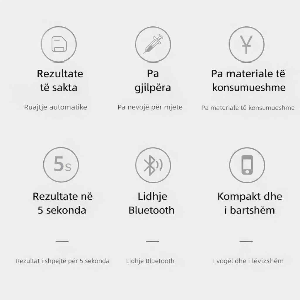 ✅ Matje të shpejta dhe të sakta – 99,9% saktësi falë teknologjisë së avancuar të miratuar nga FDA.